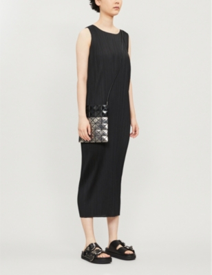 Sleeveless satin pleated midi dress. ISSEY MIYAKE PLEATS PLEASE micro-pleated mini dress. Size and fit.