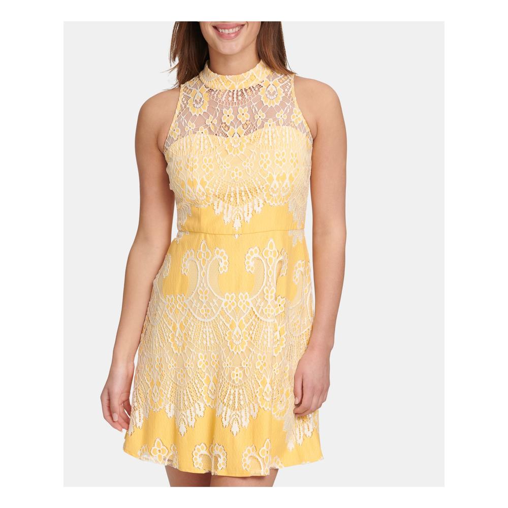 Kensie Kensie Womens Yellow Lace Sleeveless Halter Short A Line Evening Dress Size 2