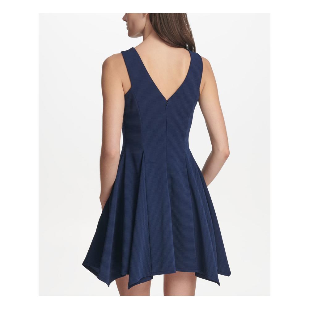 Kensie Kensie Womens Navy Ribbed Sleeveless V Neck Short Fit Flare Evening Dress Size 12