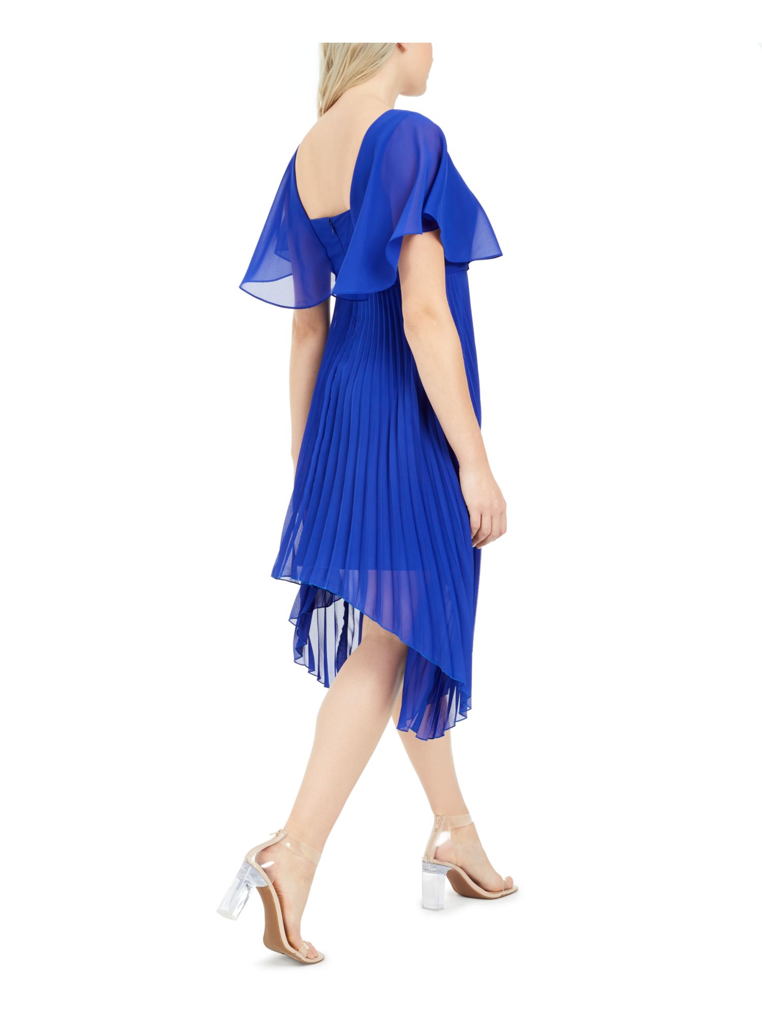 Kensie Kensie Womens Blue Pleated Solid Short Sleeve V Neck Knee Length Hi Lo Party Dress Size 2